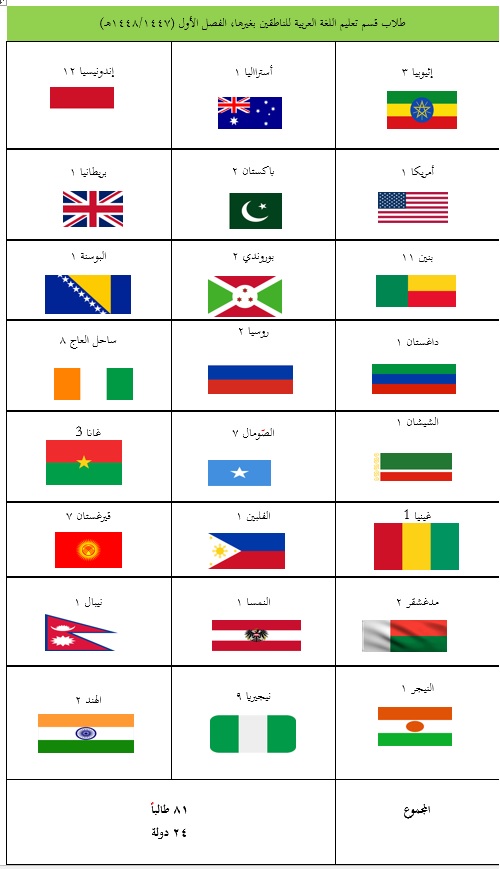الطلاب الجدد المقبولون في قسم تعليم اللغة العربية للناطقين بغيرها للفصل الدراسي الثاني العام 1445ه